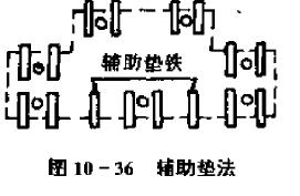 4)輔助墊法(圖10-36):當地腳螺栓間距太遠時,中間要加一輔助墊鐵。一般墊鐵間允許的最大距離為500~1000mm。