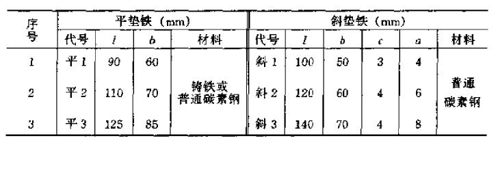 2)斜墊鐵(又稱斜插式墊鐵):大多用于振動大、構造緊密的設備上。一般斜墊鐵下要有平墊鐵。其規格見表10-16.