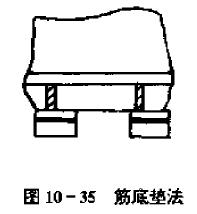 3)筋底墊法(圖10-35):設備底座下部有筋時,一定要把墊鐵墊在筋底下。
